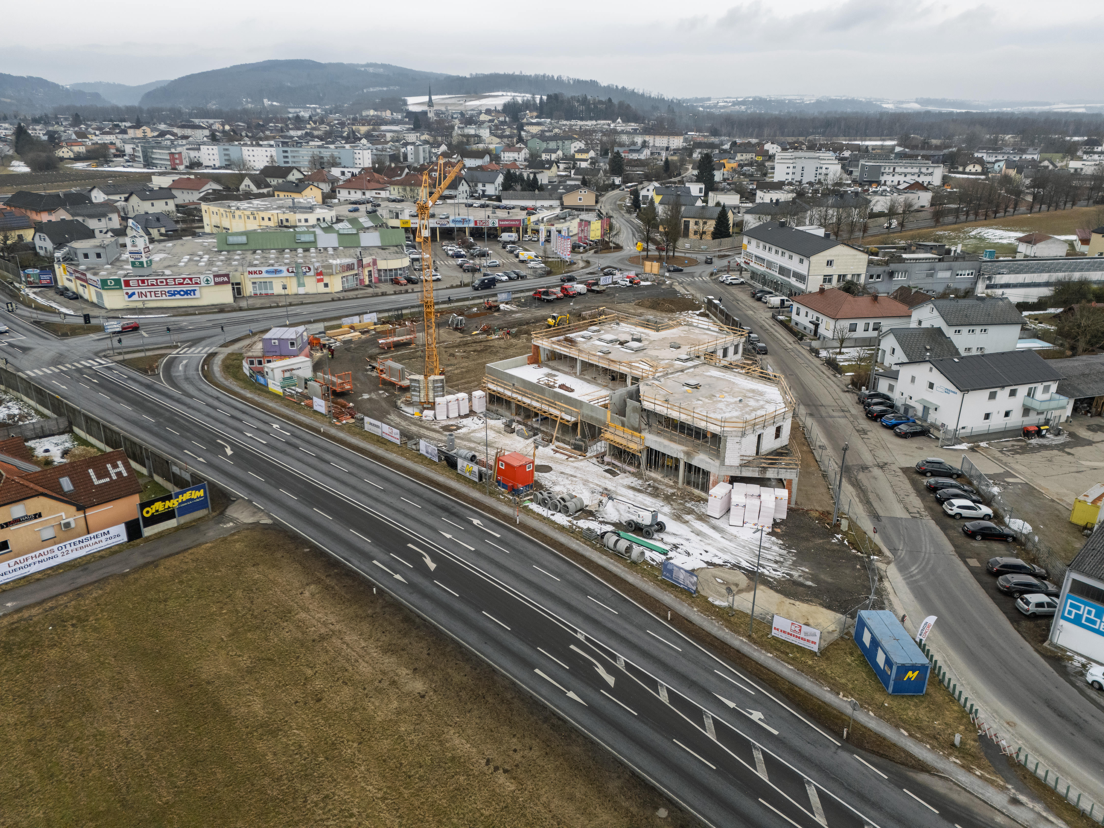 Mit dem Umbau und der Modernisierung der Einkaufszeile in der Hostauerstraße entsteht in Ottensheim ein zeitgemäßer Handels- und Dienstleistungsstandort. Ziel ist die bauliche und funktionale Aufwertung des Bestands, um langfristig attraktive, wirtschaftlich effiziente und betriebsoptimierte Rahmenbedingungen für die Mieterinnen und Mieter zu schaffen.